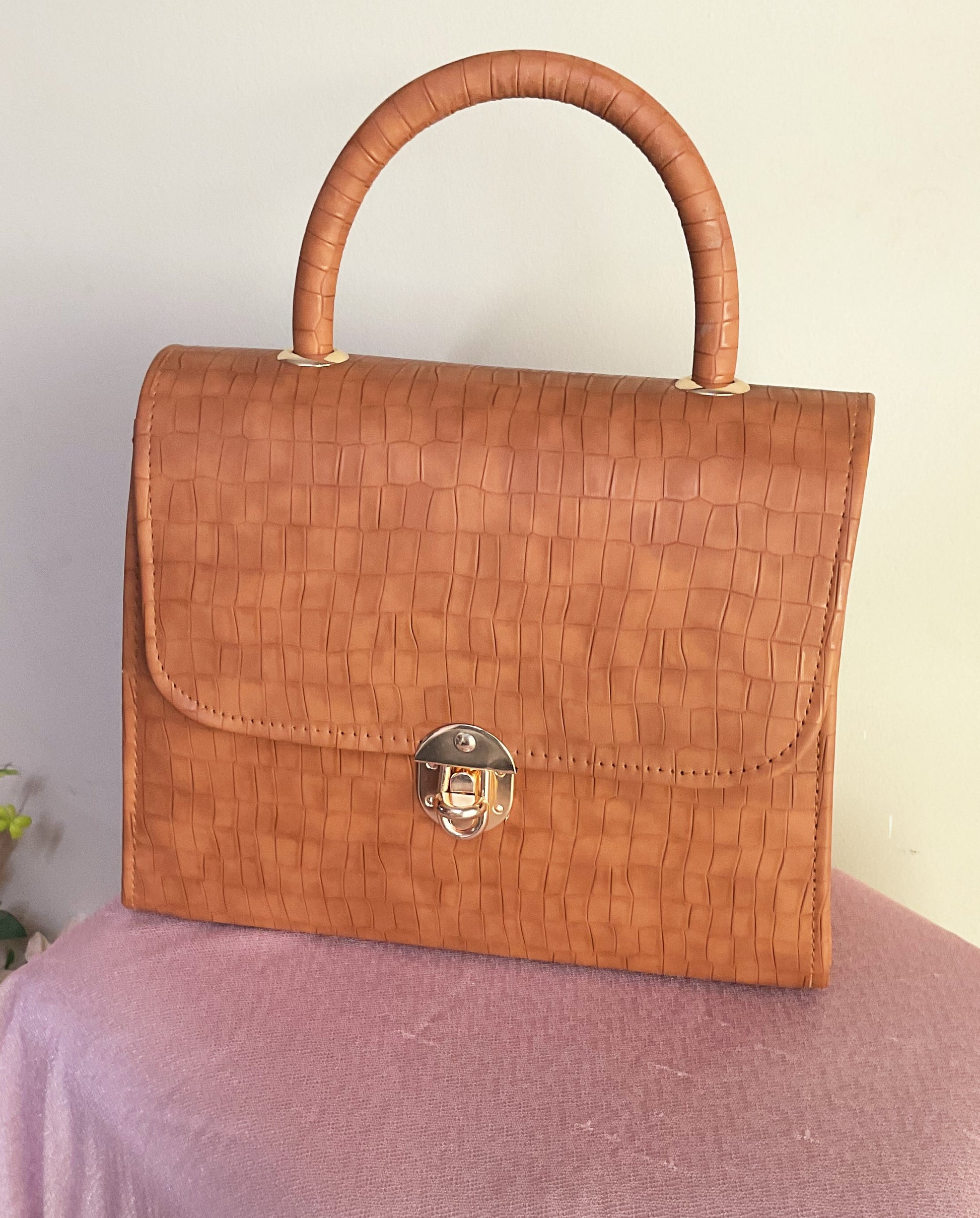 Sophisticated and bold, this croco-textured shoulder bag features a sleek front lock closure for added style and security. Perfect for elevating any outfit with a touch of luxury.