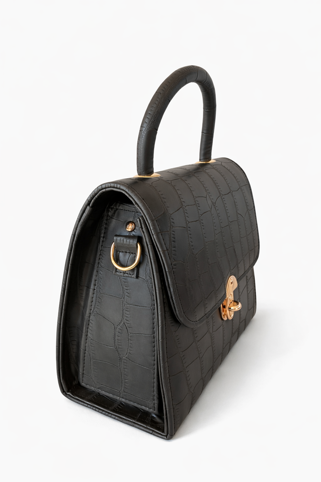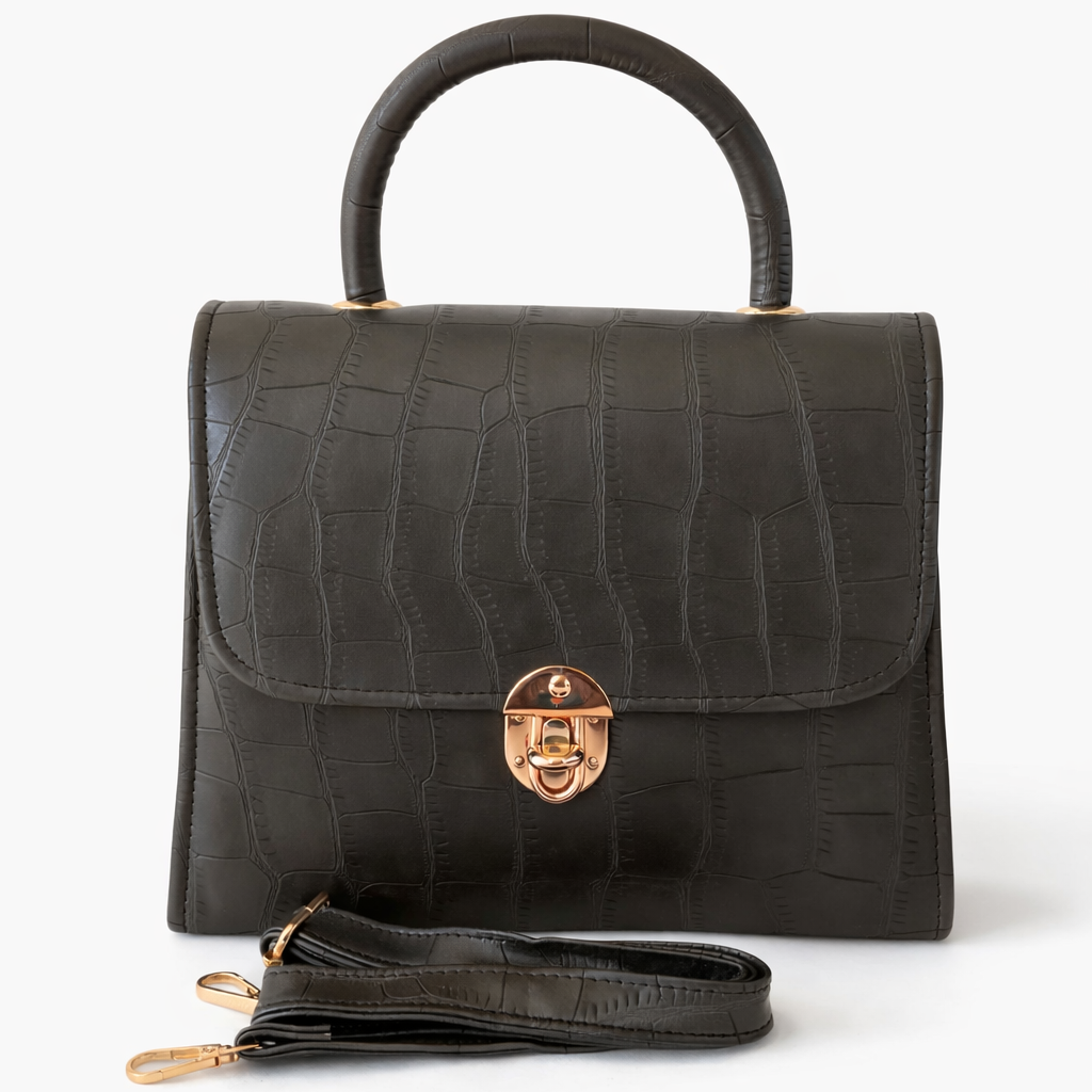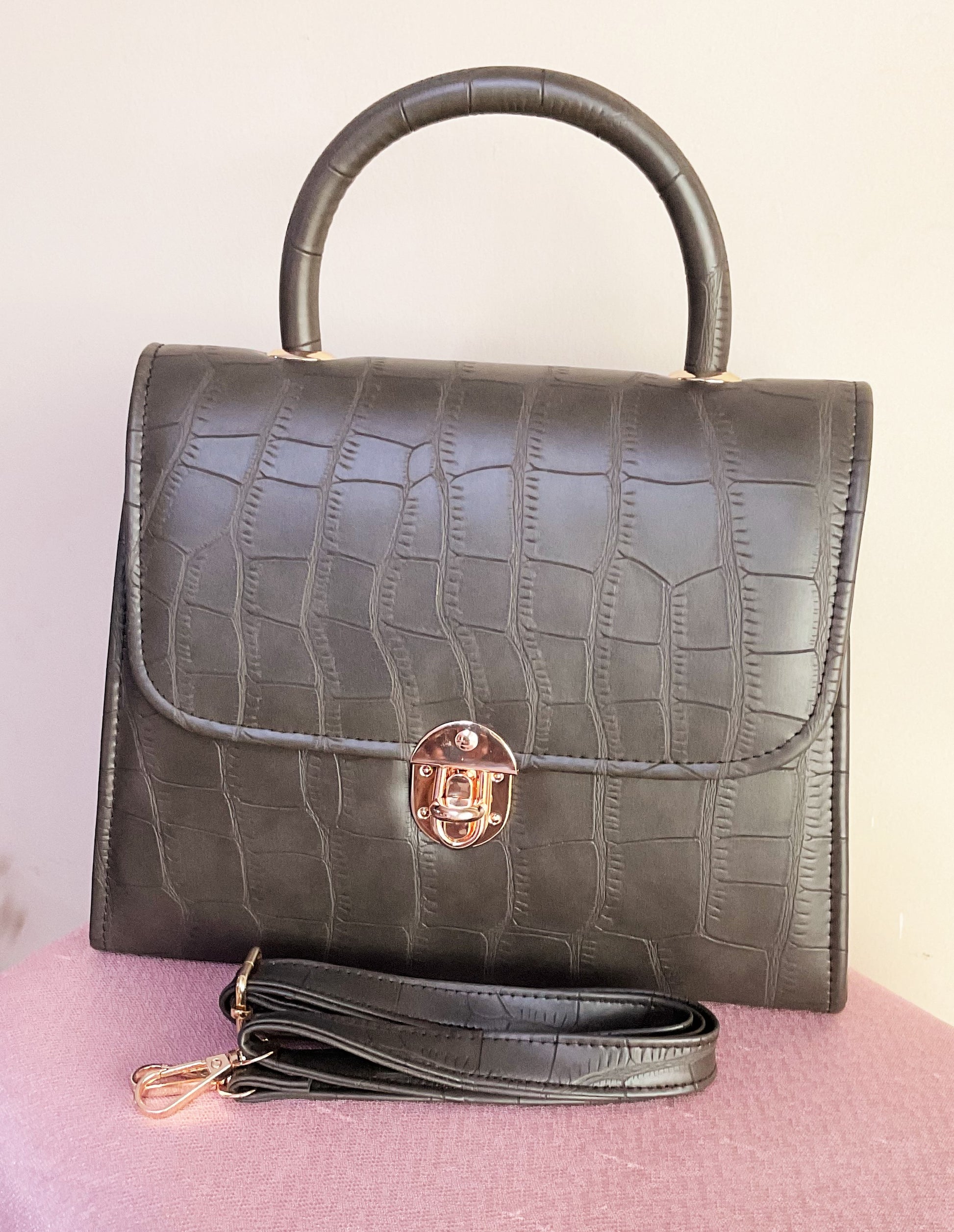 Sophisticated and bold, this croco-textured shoulder bag features a sleek front lock closure for added style and security. Perfect for elevating any outfit with a touch of luxury.