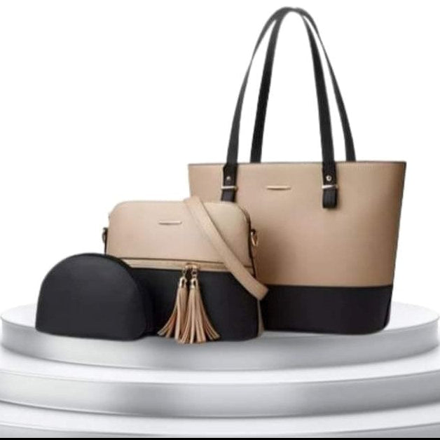 Stylish and versatile, this 3-piece set includes a spacious tote bag, a convenient crossbody/shoulder bag, and a compact pouch/clutch. Perfect for daily use, travel, or special occasions. Crafted with durable materials and matching design, it offers both functionality and elegance for every need.